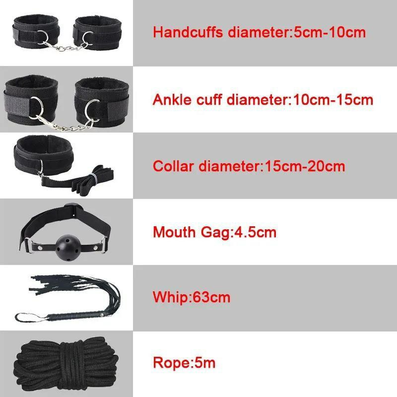 این ست شامل ۱۰ تکه از وسایل اصلی BDSM است که به شما امکان میدهد تا چندین حالت و تنوع در اعمال BDSM را تجربه کنید